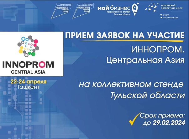 Открыт прием заявок на участие в Международной промышленной выставке «ИННОПРОМ. Центральная Азия» на коллективном стенде Тульской области.