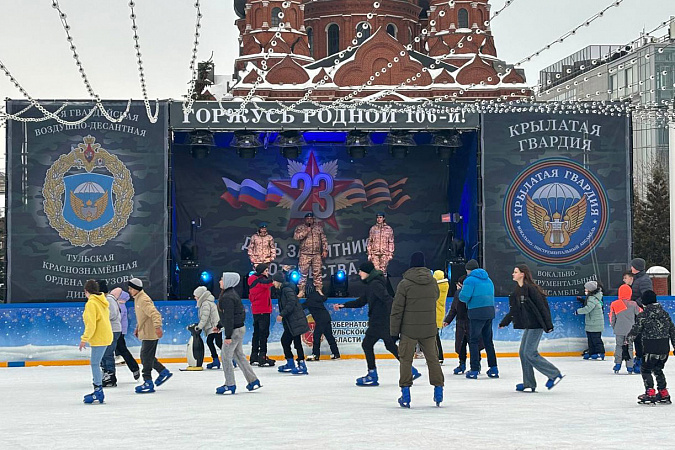 Весь день на Губернском катке на площади Ленина звучали патриотические песни, играла группа «Крылатая гвардия» и работала полевая группа. Все мужчины на катке получили в подарок пряники, а желающие написали письма участникам СВО.