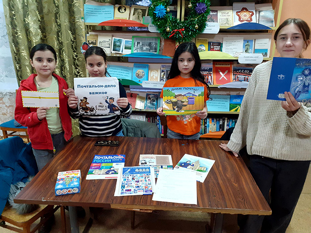 Во время встречи библиотекарь рассказала ребятам об услугах почты и значении работы почтальона. Затем учащиеся хором прочитали стихотворение С. Маршака «Почта» и «Голуби». Они также вспомнили почтальона Печкина из книги Э. Успенского «Дядя Фёдор, пёс и кот» и рассматривали изображения почтовых марок.