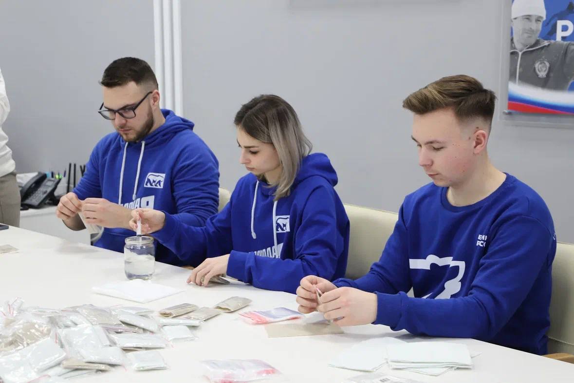 Также на площадке штаба общественной поддержки Тульской области молодогвардейцы изготовили несколько десятков индивидуальных наборов личной гигиены в виде сухого армейского душа для военнослужащих, которые будут переданы нашим защитникам на фронт.