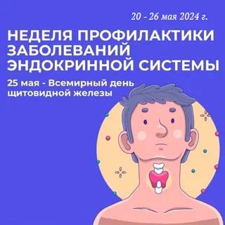 С 20.05.24 по 26.05.2024г проводится «неделя профилактики заболеваний щитовидной железы» в рамках Всемирного дня щитовидной железы
