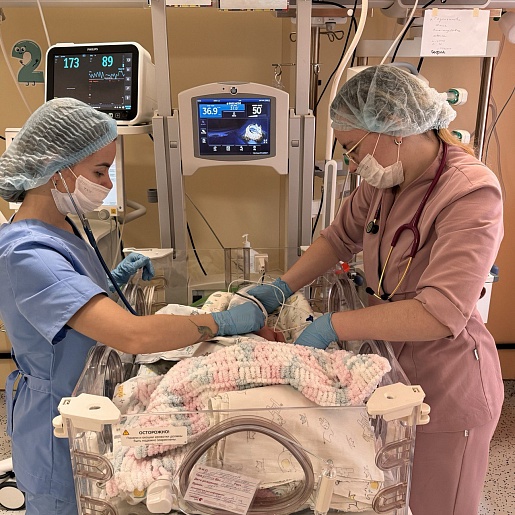 «У плода внутриутробно развилось редкое осложнение – синдром фето-материнской трансфузии (когда кровь от плода поступает в кровоток матери, что вызывает острое малокровие у плода). в связи с этим новорожденной экстренно требовалась гемотрансфузия – внутривенное введение эритроцитов. Оперативно в перинатальный центр были доставлены компоненты крови. Врачи отделения реанимации и интенсивной терапии новорожденных в течение 3-х часов проводили переливание», - рассказала заведующий отделением реанимации и интенсивной терапии новорожденных Екатерина Чернопятова.